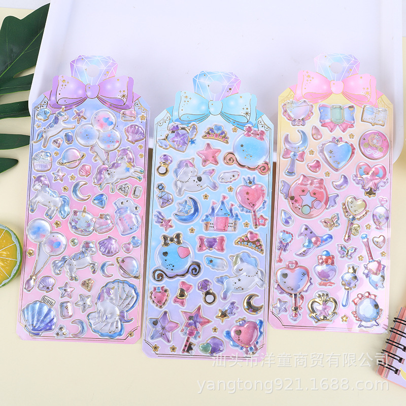 Ytアニメ児童立体箔押し水晶不乾性装飾手帳キラキラ愛奨励浮き彫りシール卸売り