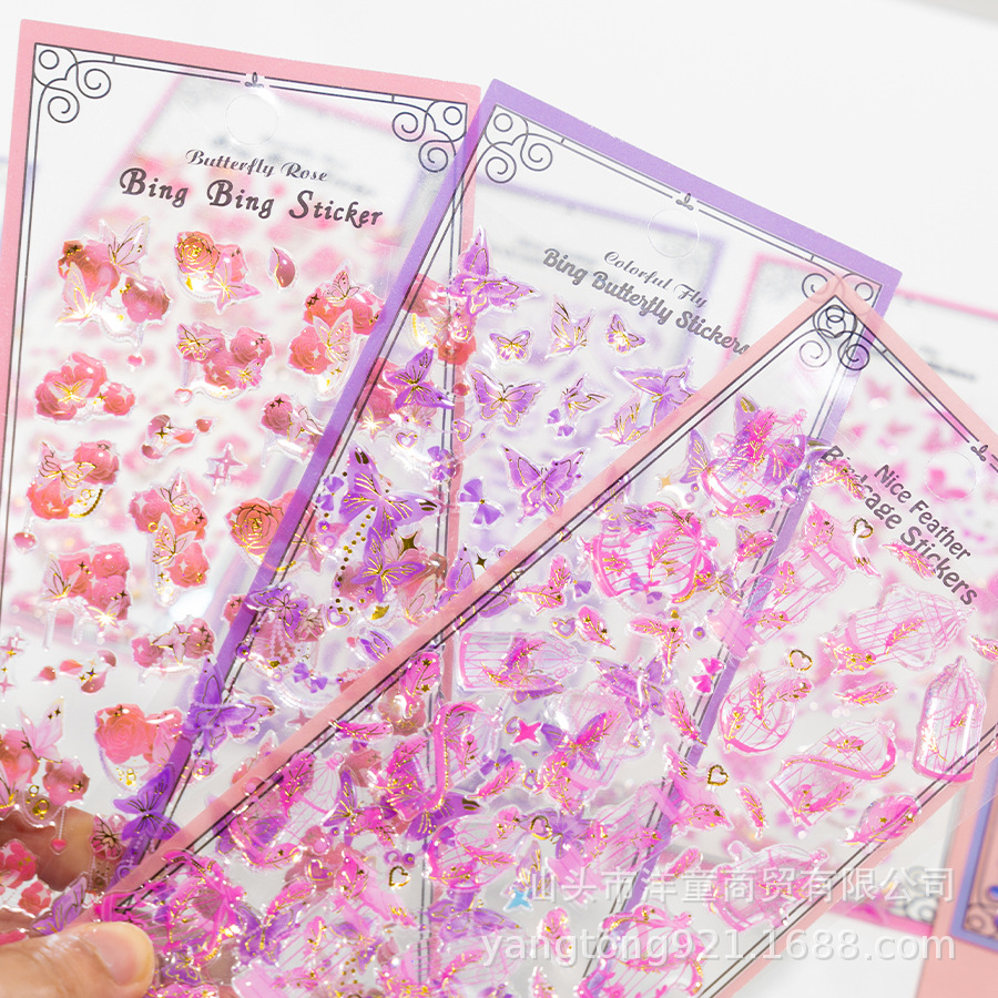 ASクリスタル接着剤立体手帳デコレーション可愛い桃ハート蝶日記子供のご褒美洋桐ステッカー本ステッカー絵画