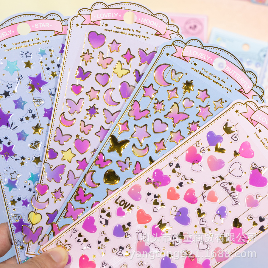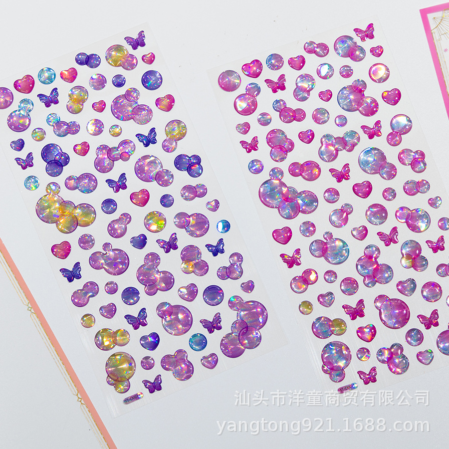 Ytas水晶滴糊シール立体手帳装飾かわいい桃心蝶日記児童六一奨励シール