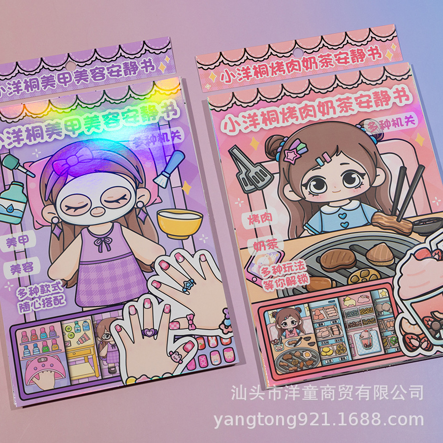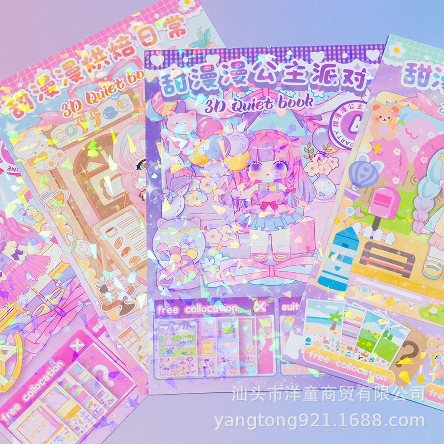 子供の漫画の王女の女の子の立体的なシーンのシールのネイルキッチンの小さい洋桐の静かな本のレーザーの手帳の日記