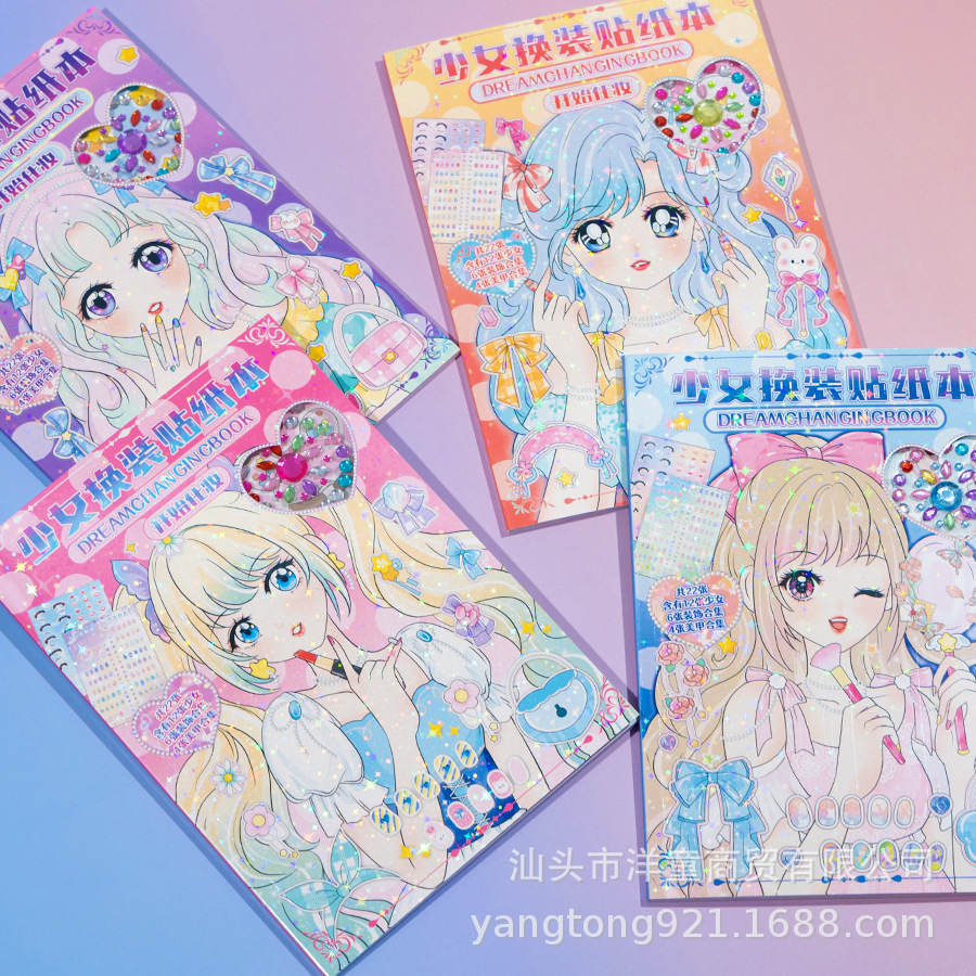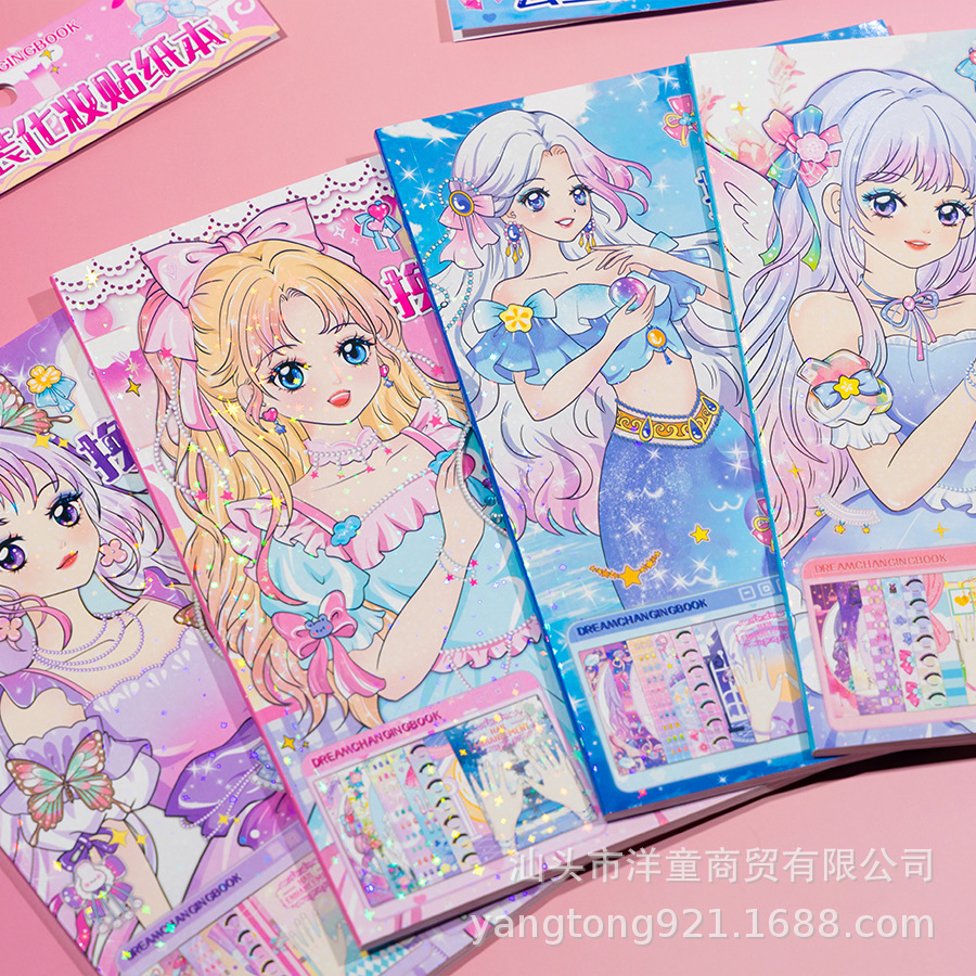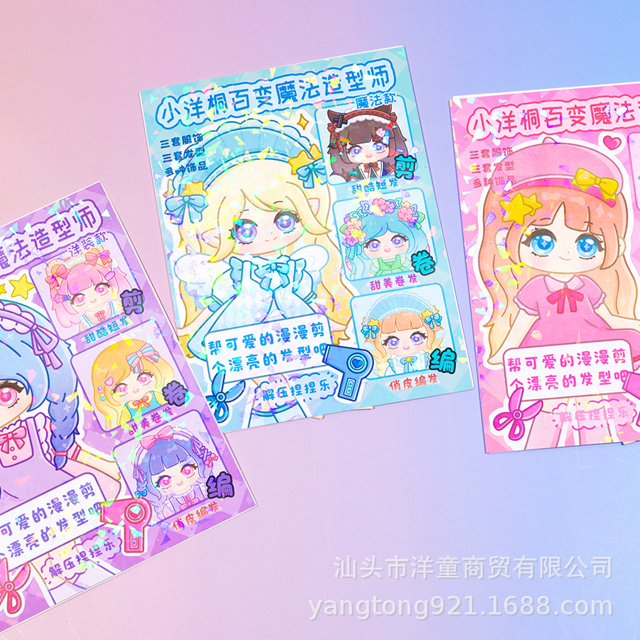 Pc子供漫画プリンセス女の子立体ステッカー洋桐魔法理髪師静か本レーザー手帳卸売り