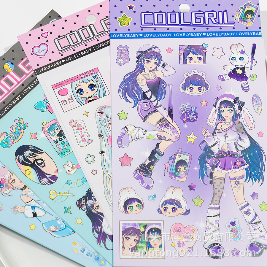 Ytah平面漫画携帯ケース装飾子供ステッカー少女心子供奨励透明ステッカー本手帳人物