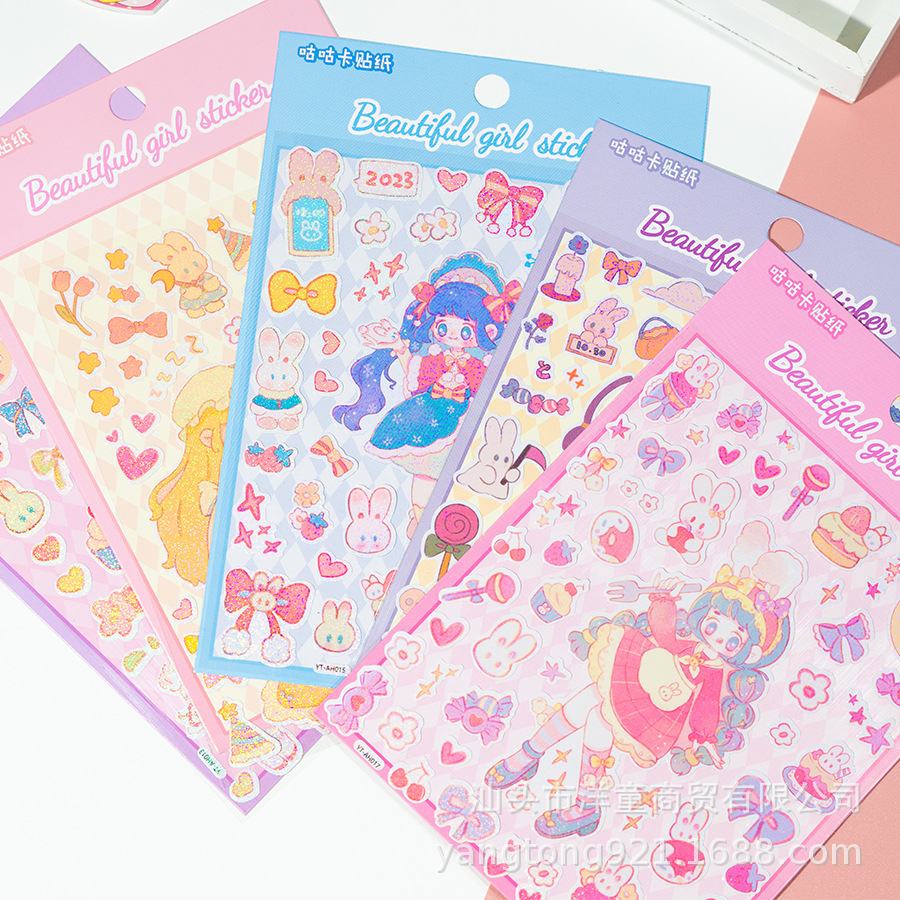 Ytax子供アニメ女の子清新立体韓国版レーザーキラキラ手帳日記ステッカーセット