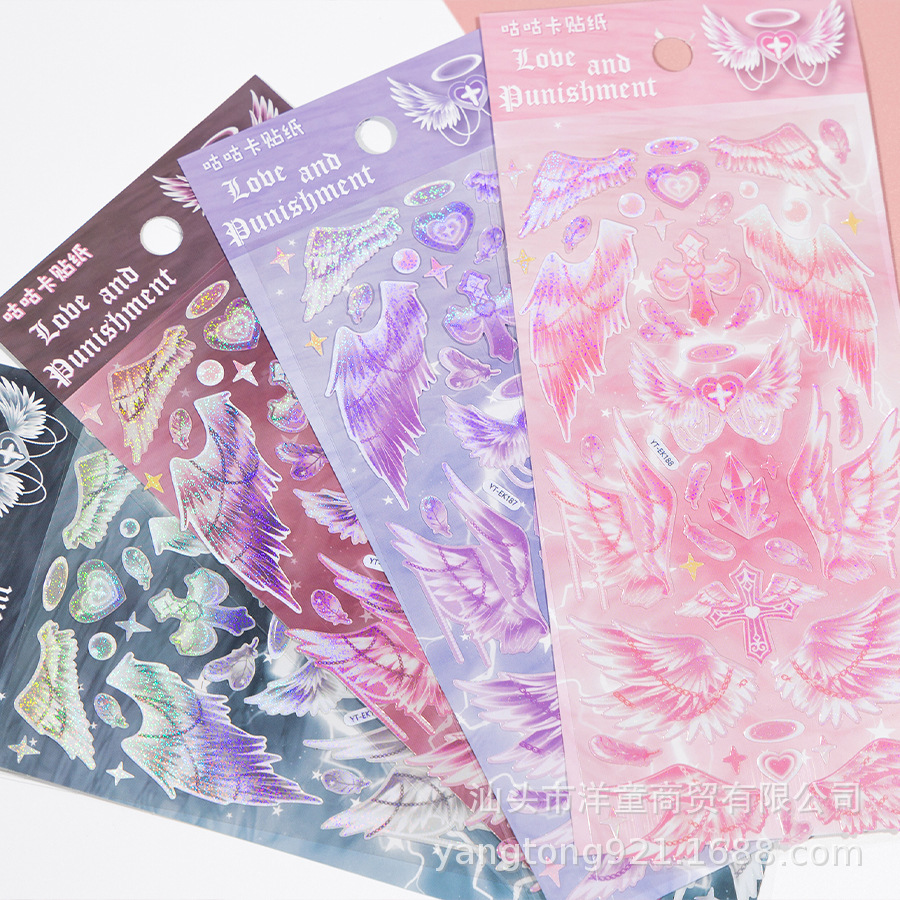 Ytek子供漫画女の子桃心清新天使翼立体レーザーキラキラ装飾手帳日記