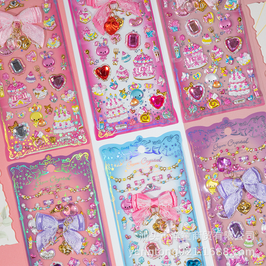 Ytbp日记手帳立体漫画蝶結び誕生石泡綿携帯電話シール装飾日記子供貼り絵