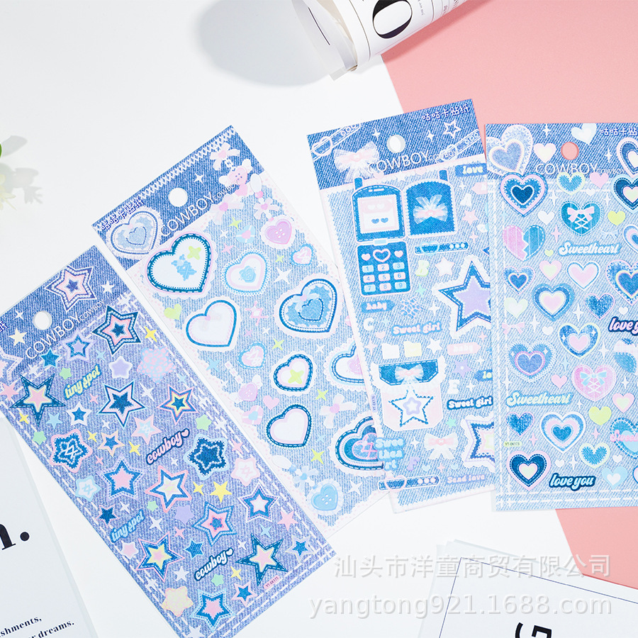 YT-EKの子供の漫画の女の子の桃の心の清新なデニムの色の立体のレーザーは光ります。