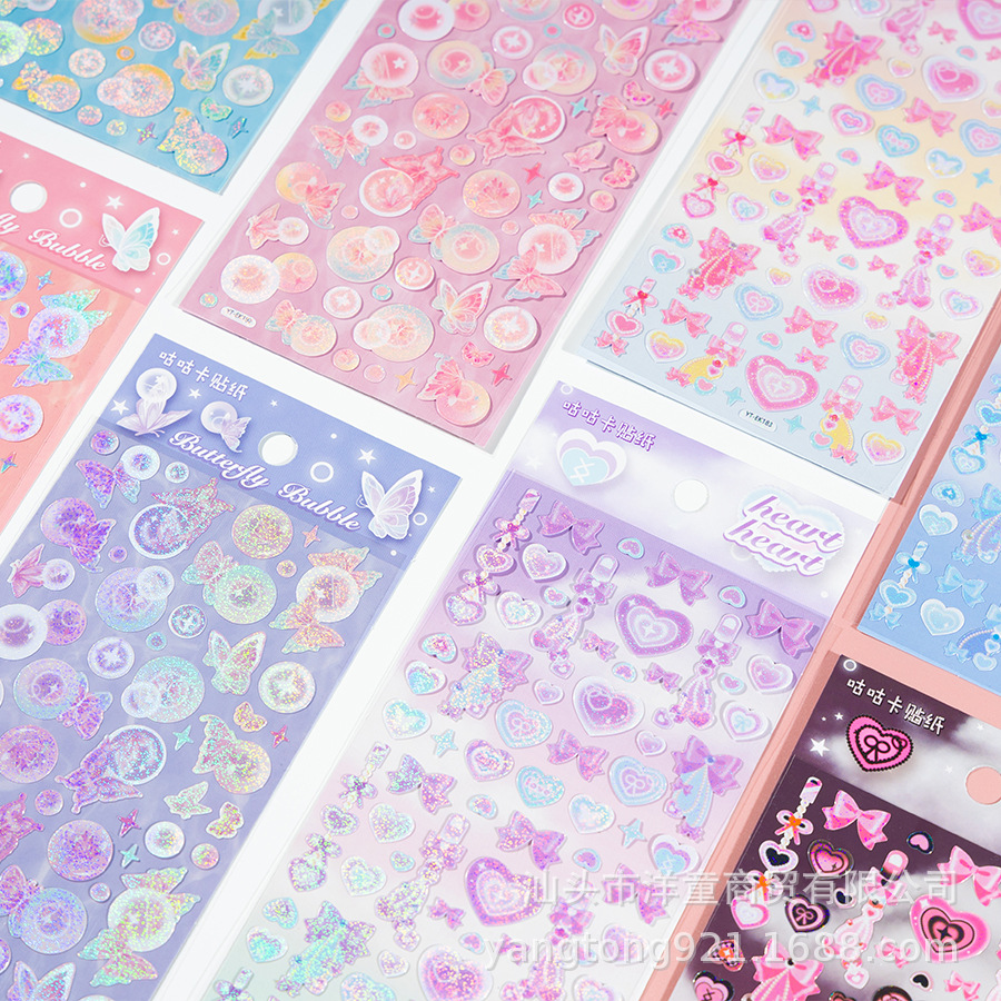 YT-EKの子供の漫画の女の子の桃の心の蝶の清新な立体のレーザーのカチカチと装飾の手帳の日記のステッカーの絵