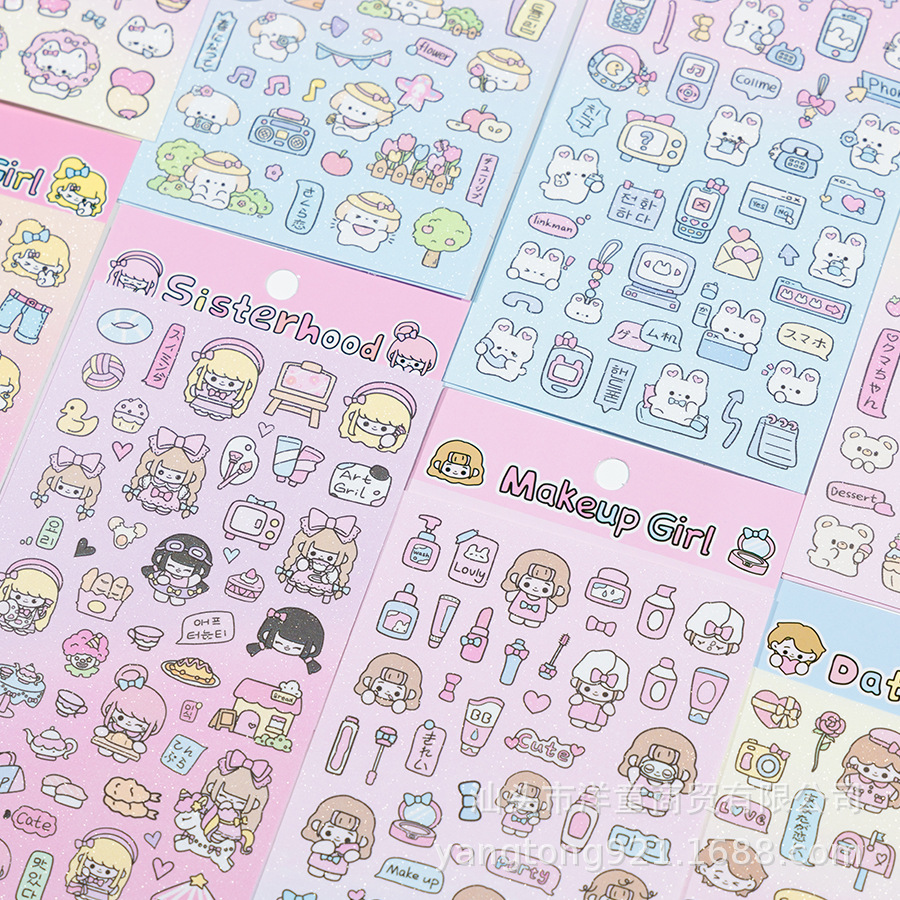 YT-TE子供漫画かわいい女の子pvc手帐日记携帯电话の装饰透明diyメモステッカーセット