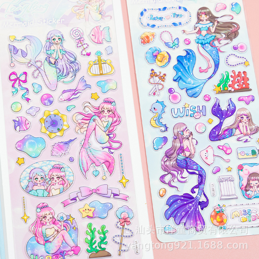 Ythb日记手帳立体漫画バブルコットン手帳機シールマーメイド装飾日記子供ステッカー