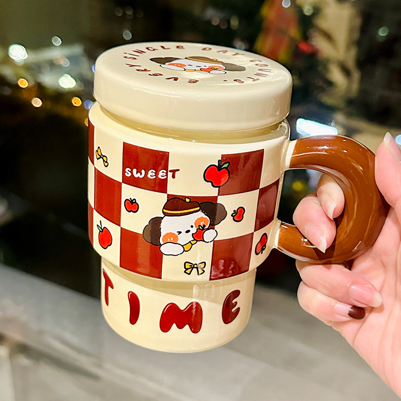 かわいいアニメ子犬セラミックマグカップ蓋付き家庭用牛乳朝食カップクリエイティブギフトカップ卸売りお土産