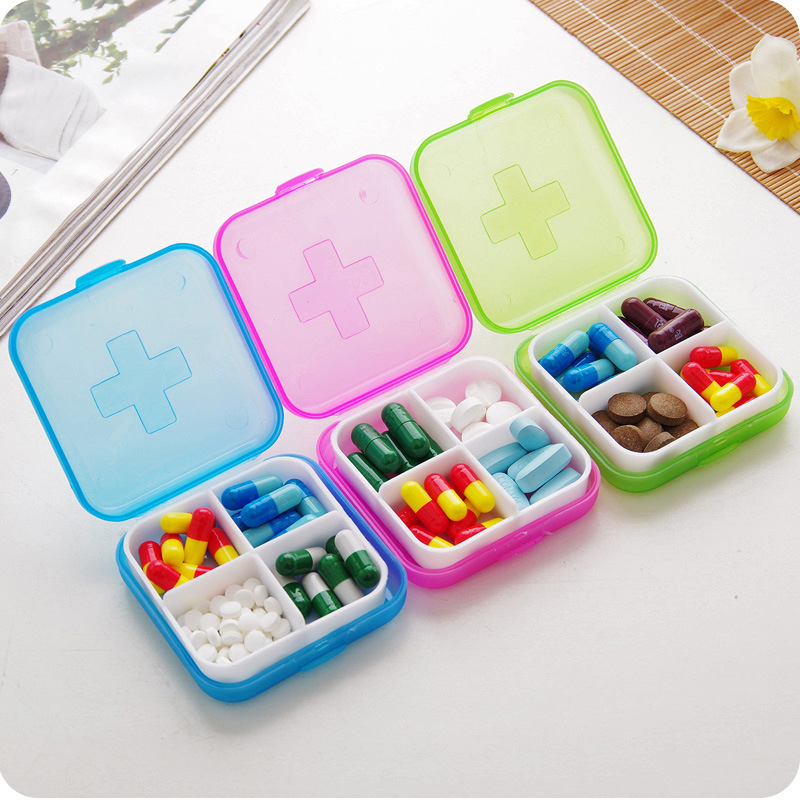 旅行薬箱十字四格携帯分注小型ミニ薬箱7日間薬箱携帯錠剤箱