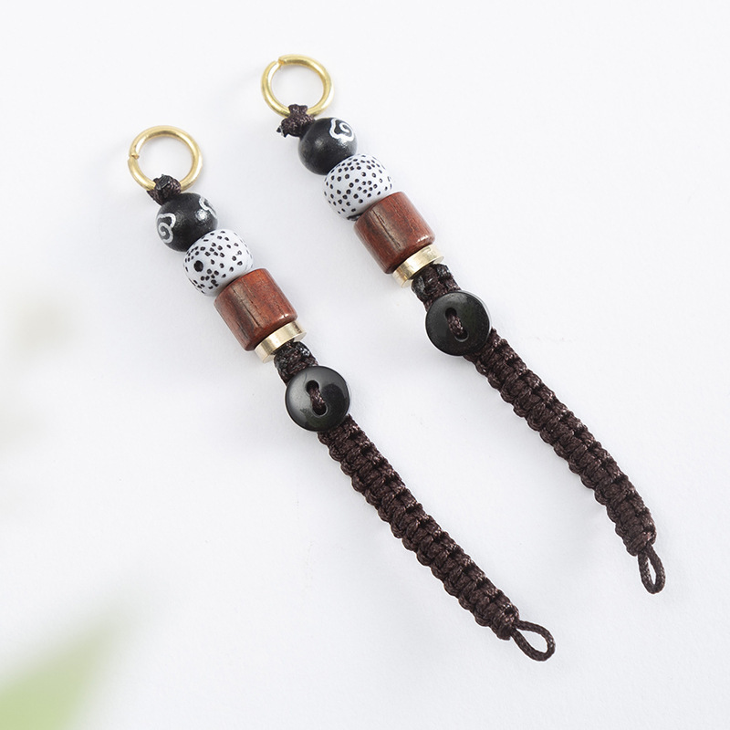 カレー色平結活ボタン祥雲縄星月菩提キーチェーン純手作り編み紐キーホルダー部品卸売り