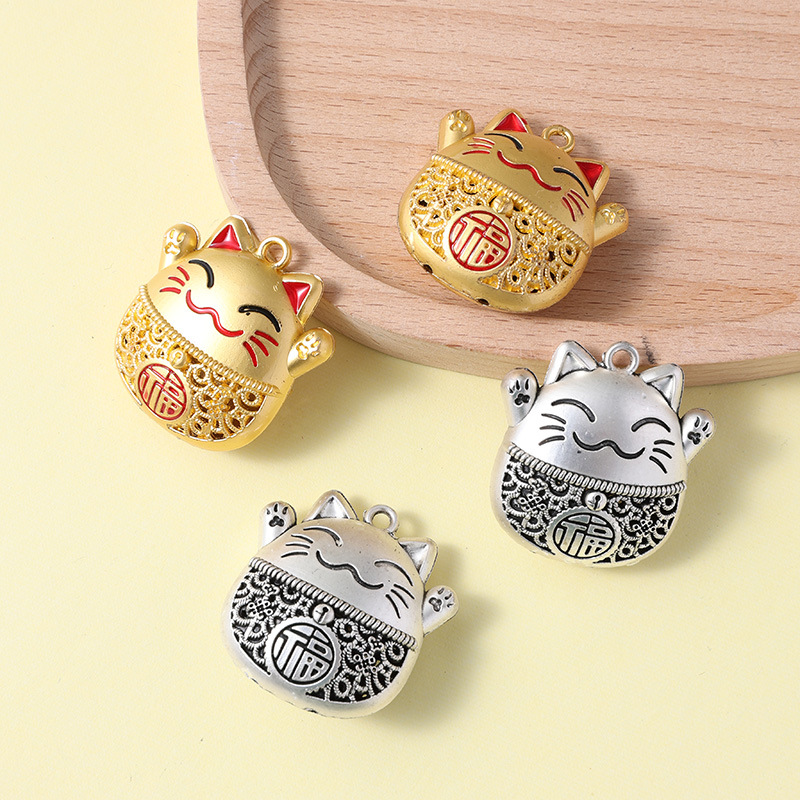 メーカー直販高保色古法沙金エナメルカラー抜き招き猫ペンダント招き猫ペンダントdiy部品