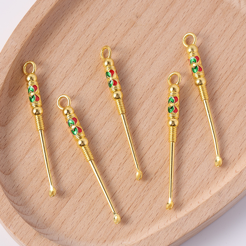 メーカーの卸売り合金の耳のさじのペンダントは銅の螺旋の取っ手に似せて耳のさじを掘って耳のキーホルダーのペンダントを取り出して卸売りします。