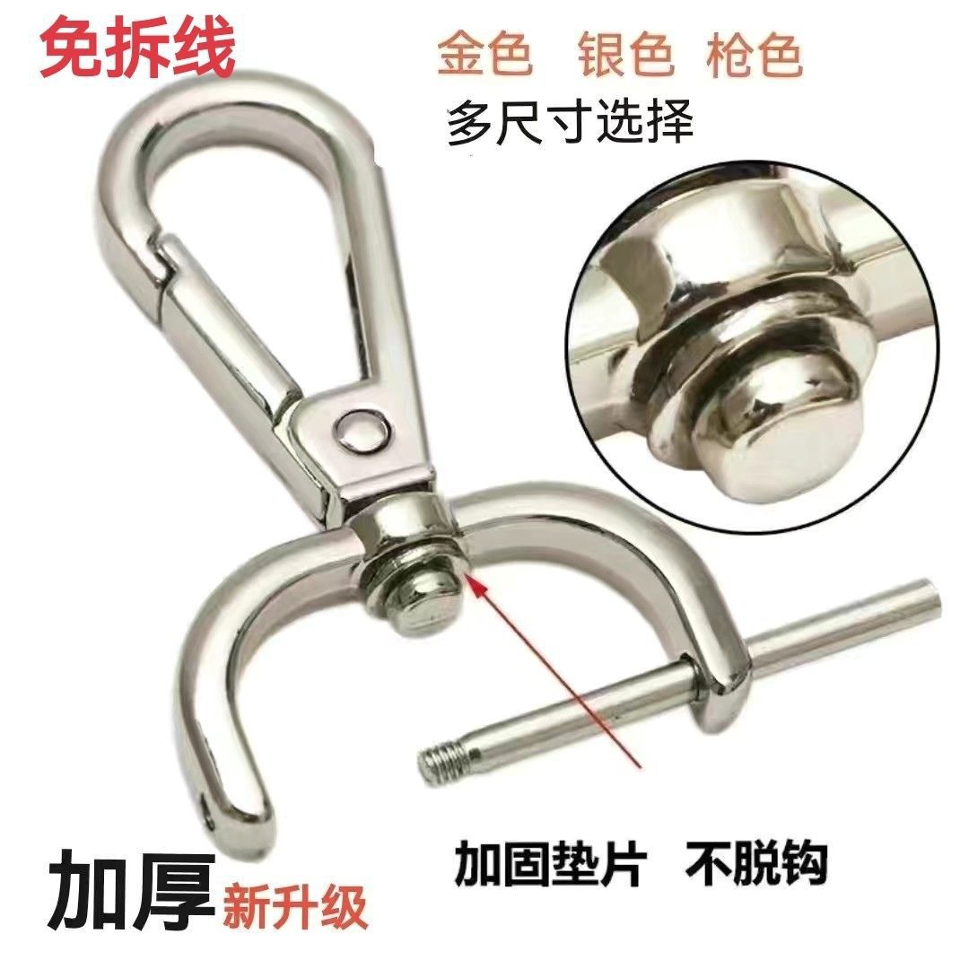 バッグの部品は糸を外すことなくかぎを掛けます。金属のロックと肩のベルトの部品を掛けます。犬のボタンはねじの金色のフックをねじります。