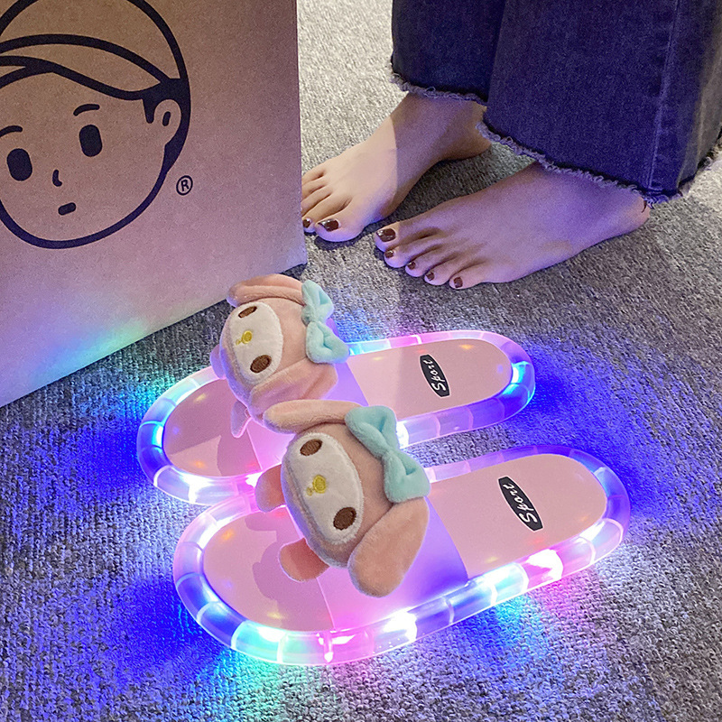 女性用のインターネットセレブのクリスタル発光スリッパ、女の子用の夏のアウターウェア用のグリッターサンダル、クリエイティブで面白いライトアップ