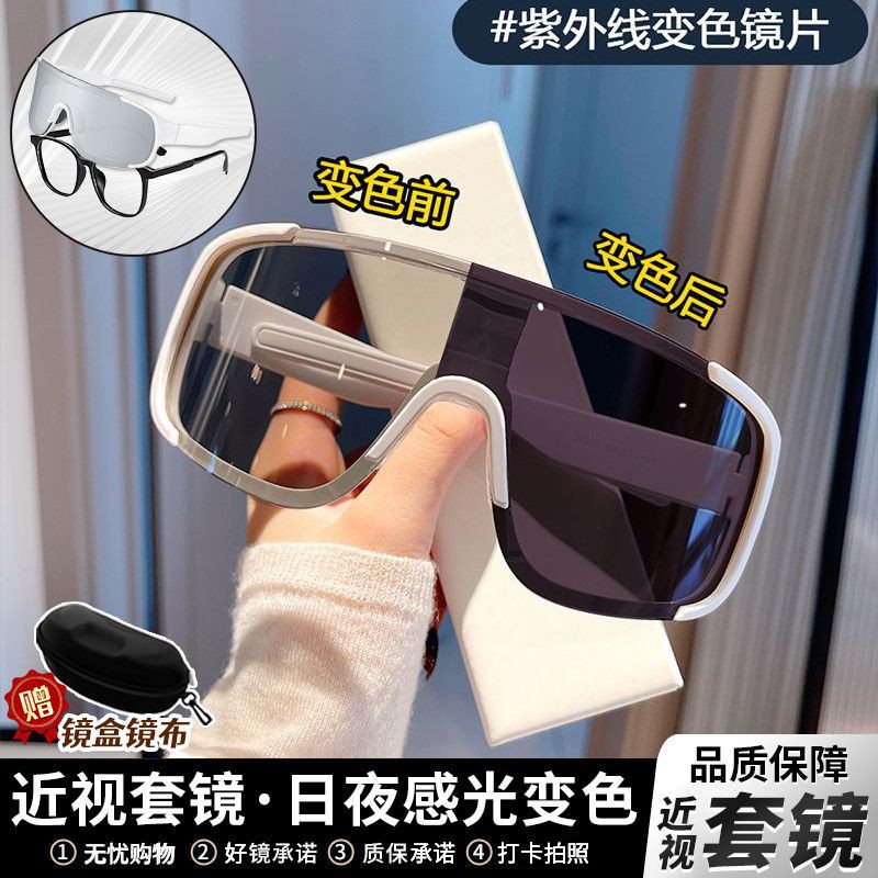 色が変わる昼夜両用近視メガネセット、大型フレーム水銀アウトドアサイクリング登山防風ナイトライディングサングラス