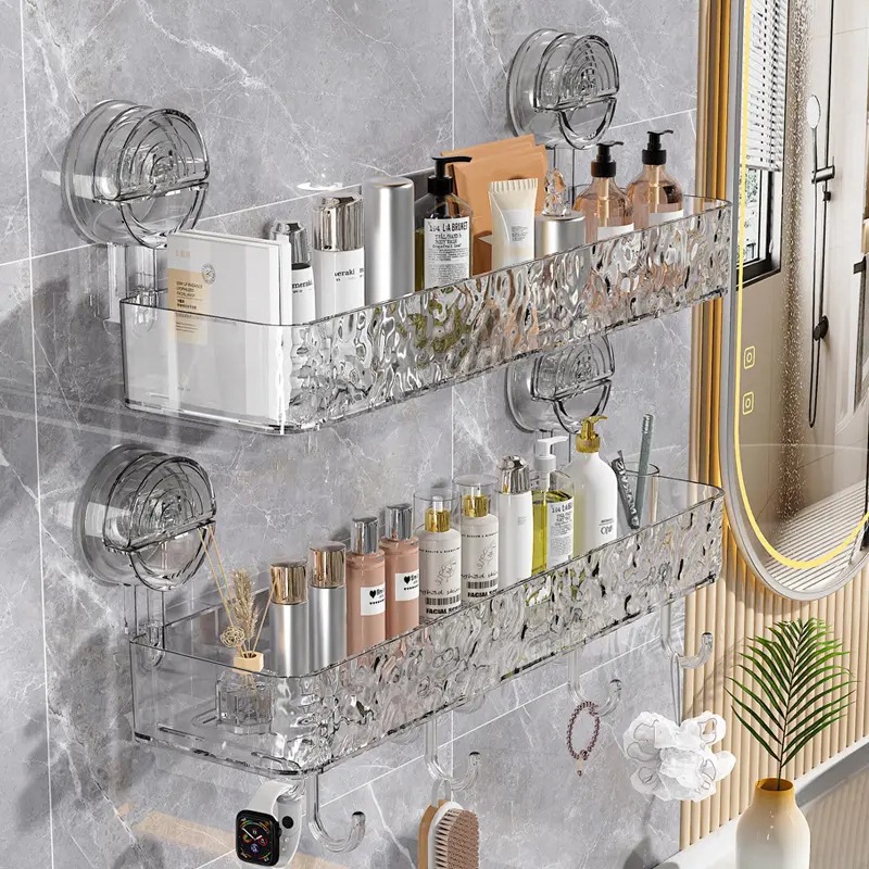 軽くて豪華な波模様のバスルーム吸盤収納ラック、パンチングなし、壁掛け収納アーティファクト、壁掛けバスルーム収納ラック