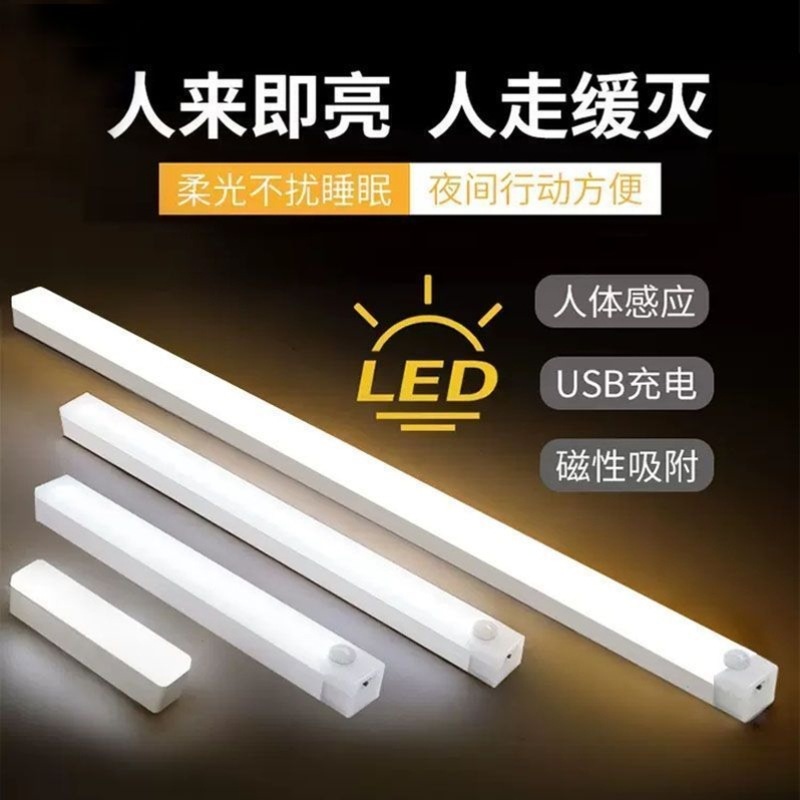 充電led人体感応灯付自粘無線食器棚灯無配線下駄箱箪笥厨房酒棚灯条