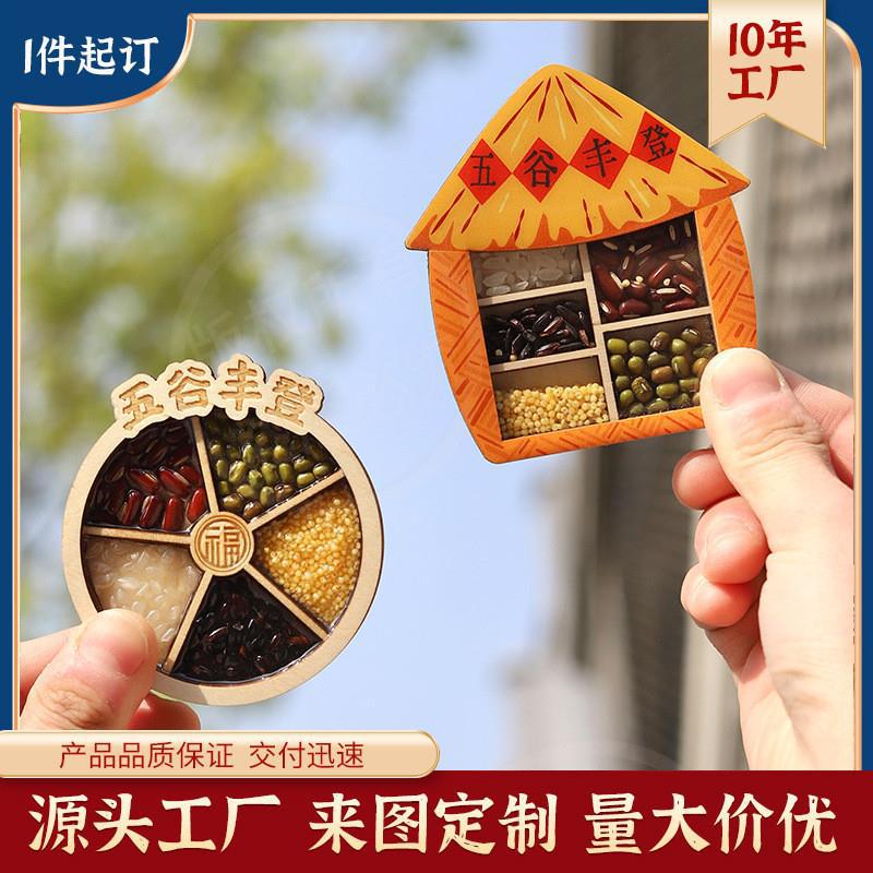 冷蔵庫用マグネット、豊かな穀物、新築祝い、富の神、パーソナライズされた創造的な装飾、中国風の木製レトロな高級感