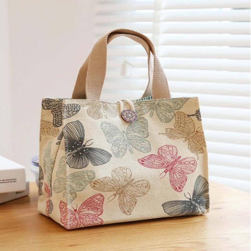 日系キャンバスバッグ手持ち弁当バッグマミーバッグins弁当バッグ女子ファッション通勤サラリーマン弁当バッグ付き