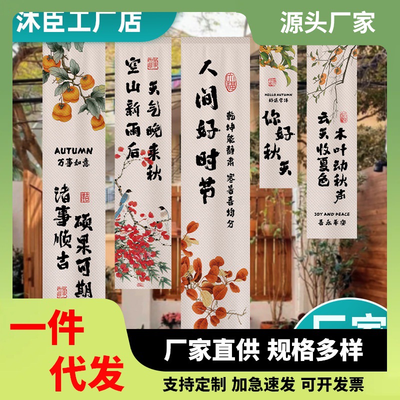 デザイン書道天幕テント古風詩語背景壁布小院名宿キャンプ風雰囲気装飾ストリップ布