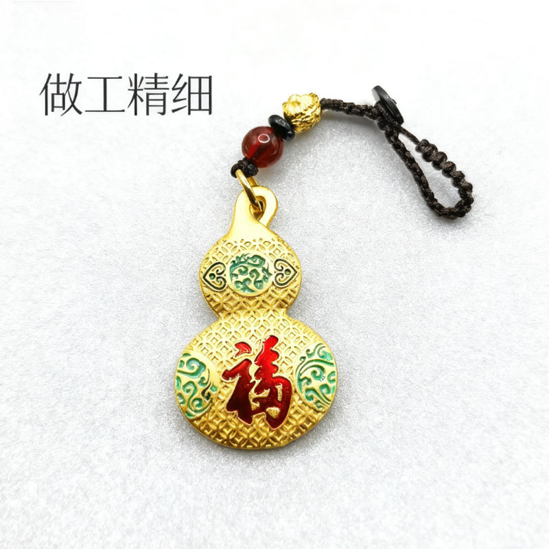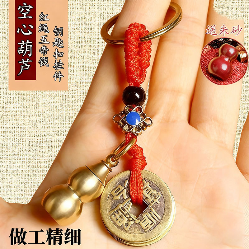 真鍮中空ひょうたん辰砂赤いロープ五帝富キーホルダー男性と女性のための創造的な個性富と安全のペンダント