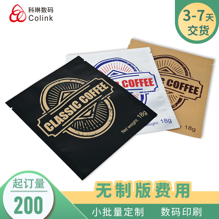 デジタルカラー印刷アルミ箔三辺封コーヒー包装小袋マット膜アルミメッキ複合平ポケット200個から注文