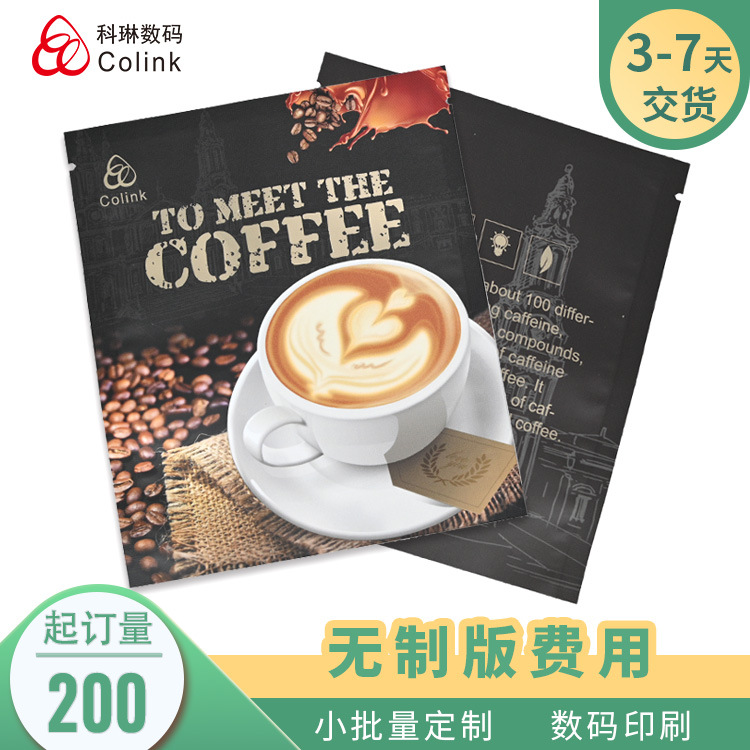 デジタル無版印刷カスタムコーヒー粉包装小袋アルミ箔複合三辺封平ポケット200個から注文