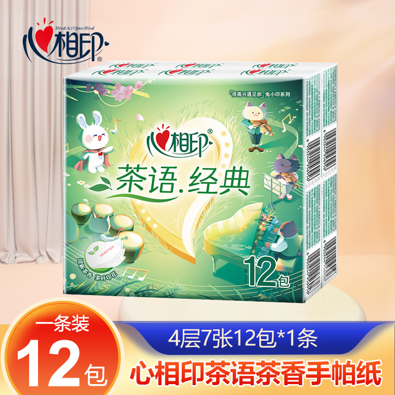心相印ハンカチ紙茶語茶香兎小印ナプキン4層7枚12包携帯小包ティッシュ