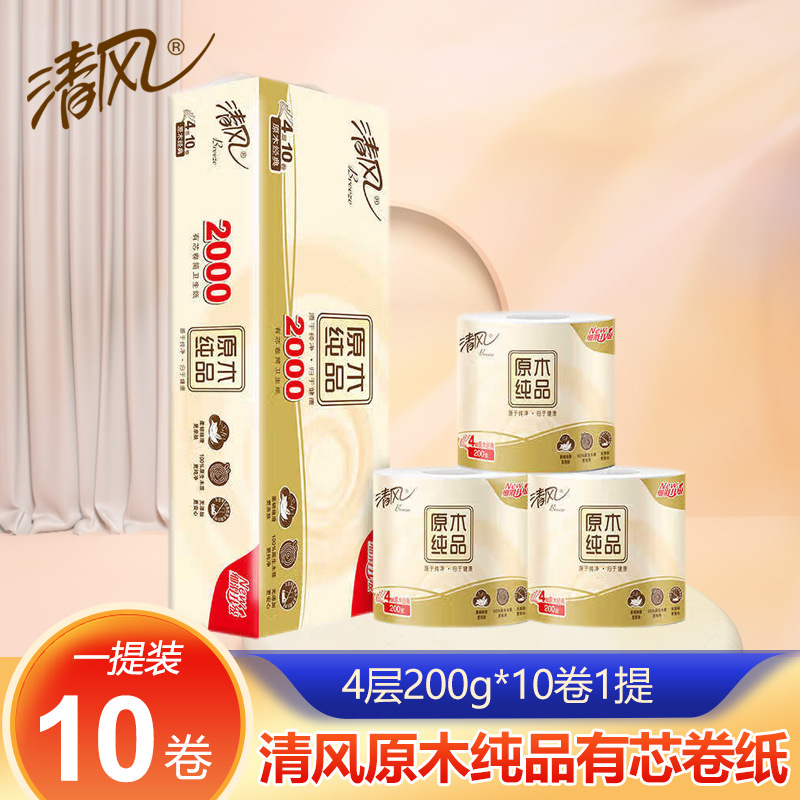 清風ロール紙4層200グラム10巻有芯トイレットペーパートイレティッシュ家庭用実恵装トイレットペーパートイレットペーパー卸売り
