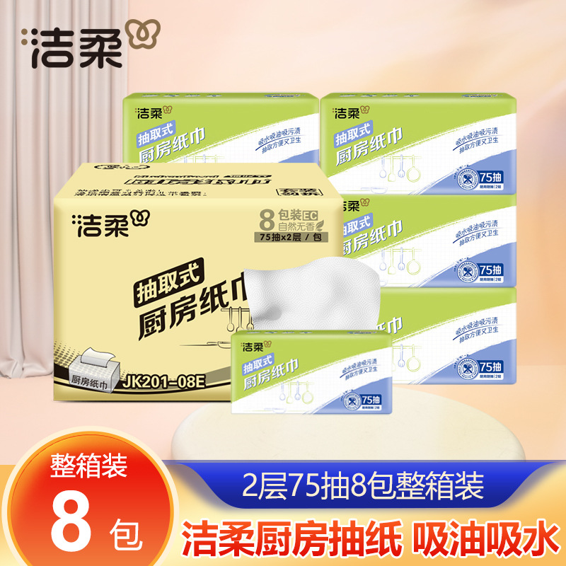 Jierou キッチンペーパータオル 2 層 75 枚 8 パック全箱吸収紙油吸収紙使い捨てキッチンペーパータオル家庭用