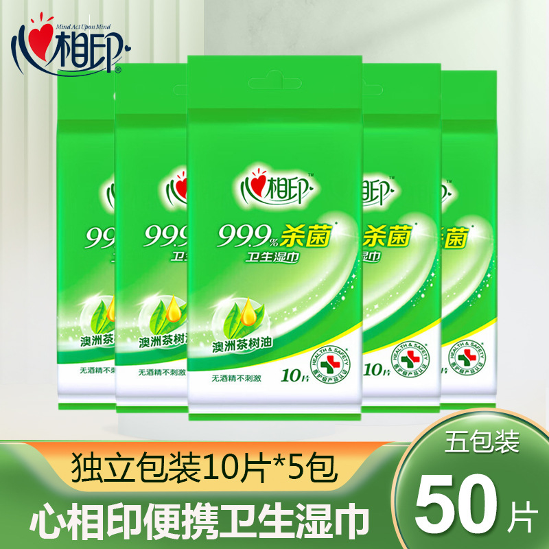 心相印ウェットティッシュ殺菌独立包装携帯用5パック50枚のモノリシック清潔衛生ウェットティッシュ携帯用ウェットティッシュ
