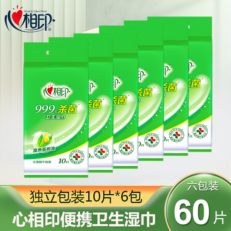 心相印湿巾殺菌独立10枚 * 6包衛生湿ティッシュ小包携帯旅行清潔湿巾