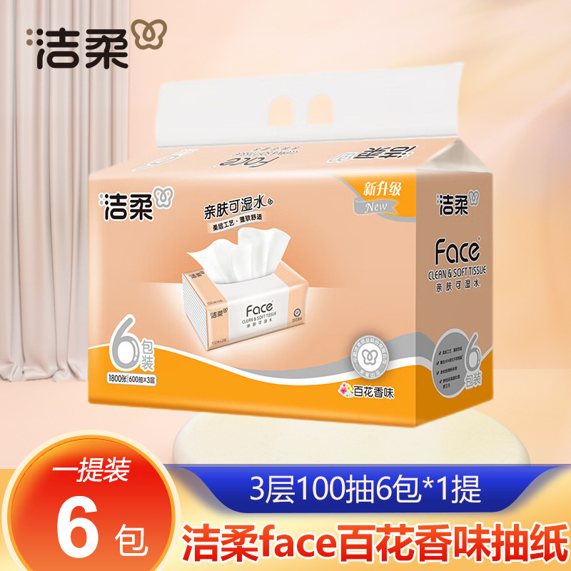 Jierou ティッシュペーパー 百花の香り 3 層 100 ティッシュ 6 パック トイレットペーパー ティッシュ ナプキン フェイシャルティッシュ 家庭用手頃な価格のペーパータオル