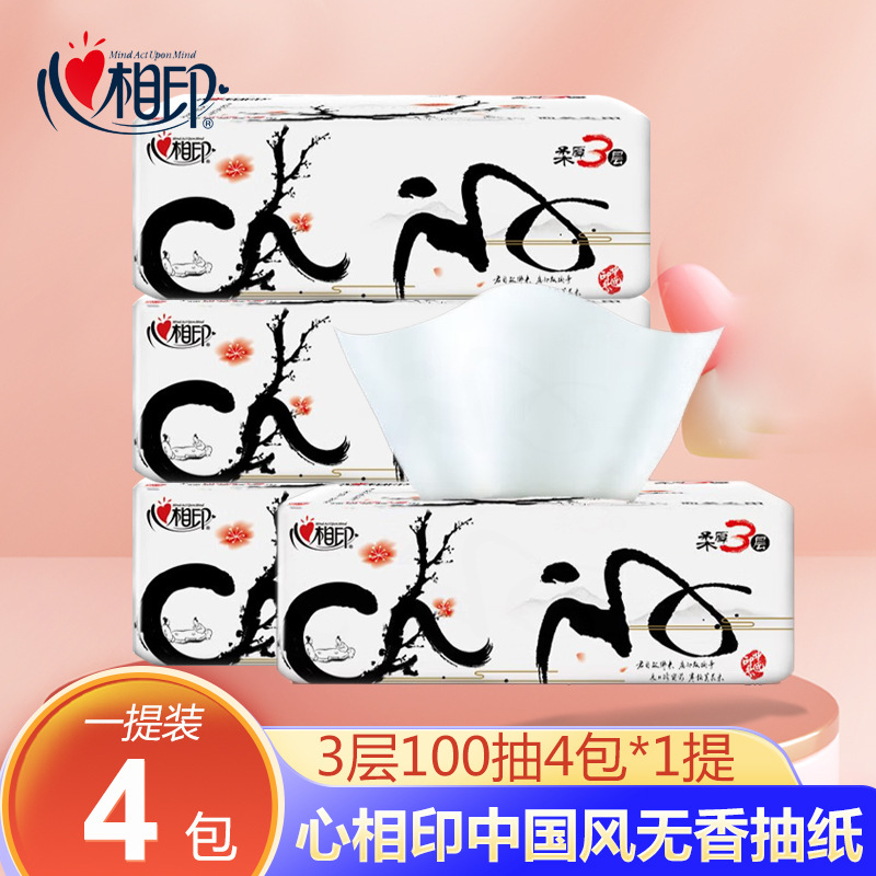 心相印ティッシュ中国風3層100ポンプ4包家庭用ナプキンティッシュトイレットペーパー
