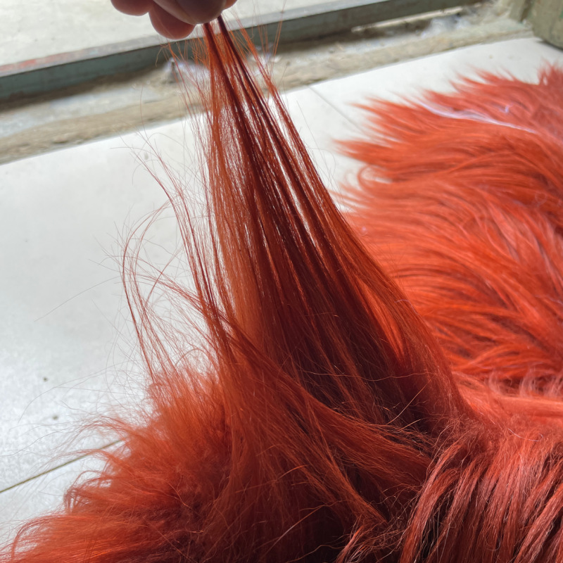 タヌキの染色の襟は色を合わせて帽子の襟のアライグマを整えます。