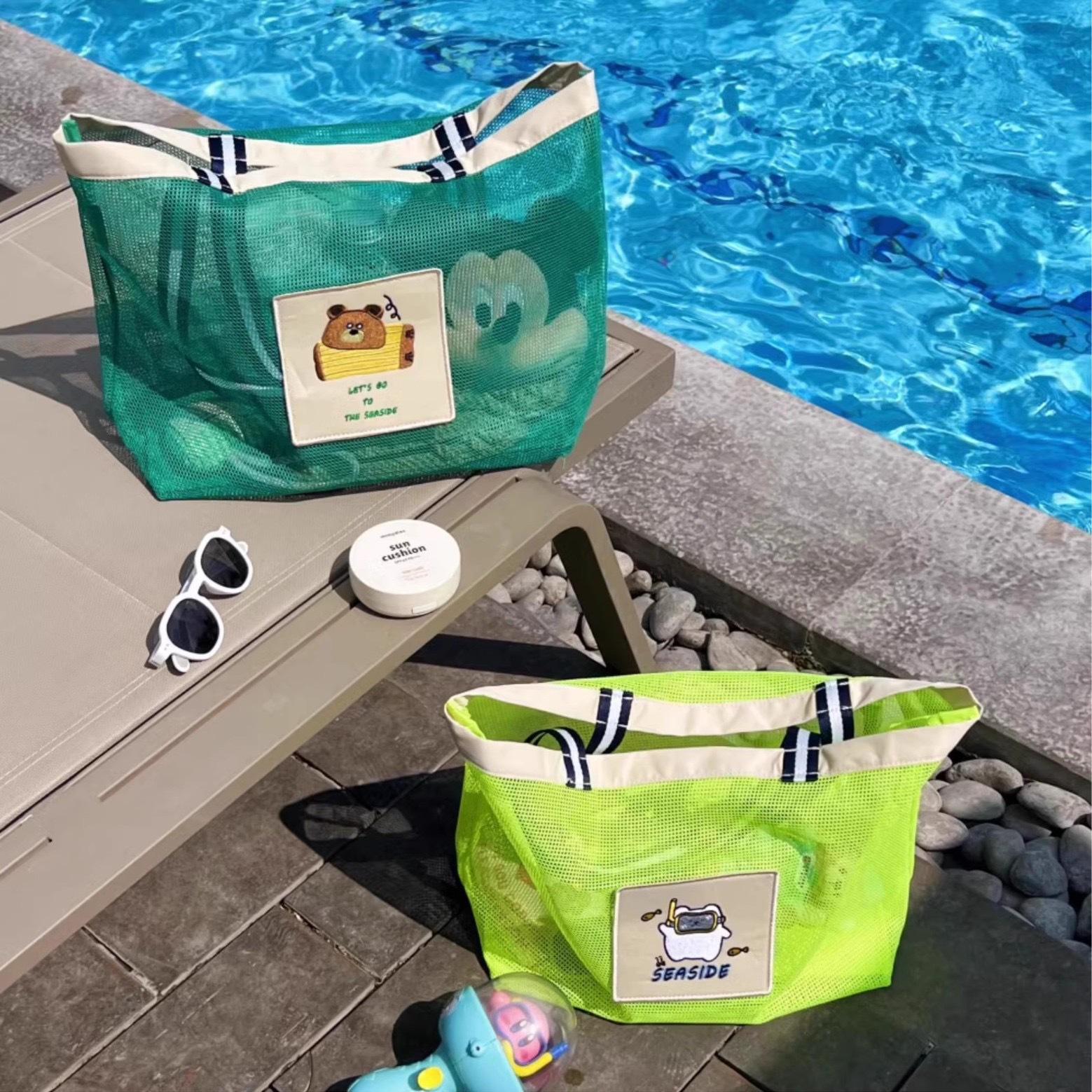 INS韓国子供用多ポケット容量手提げ水泳バッグネットポケットビーチ水泳収納ネットバッグピクニック