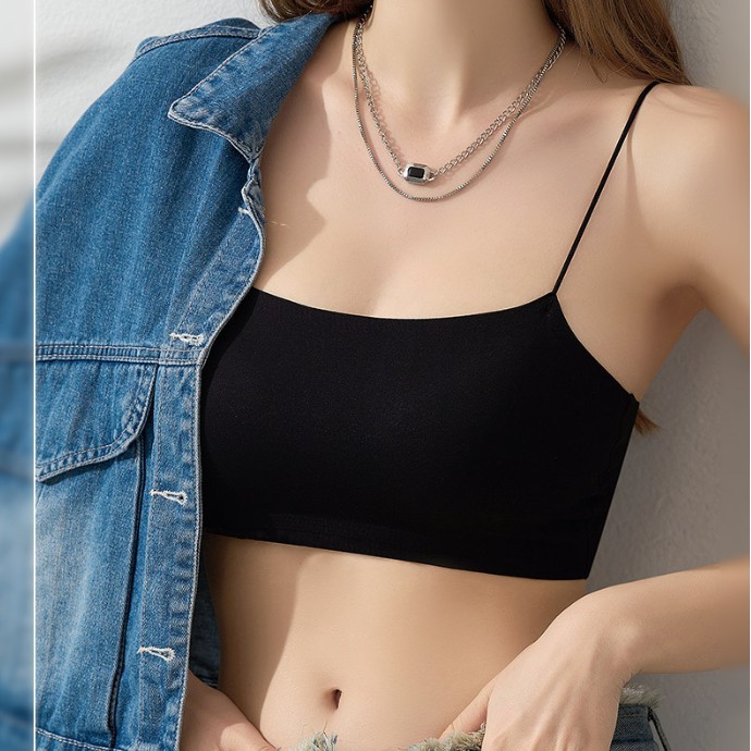 レディースシームレスブラトップ、露出防止一体型エアカップ、セクシーでスリムなキャミソール下着、バストアップ