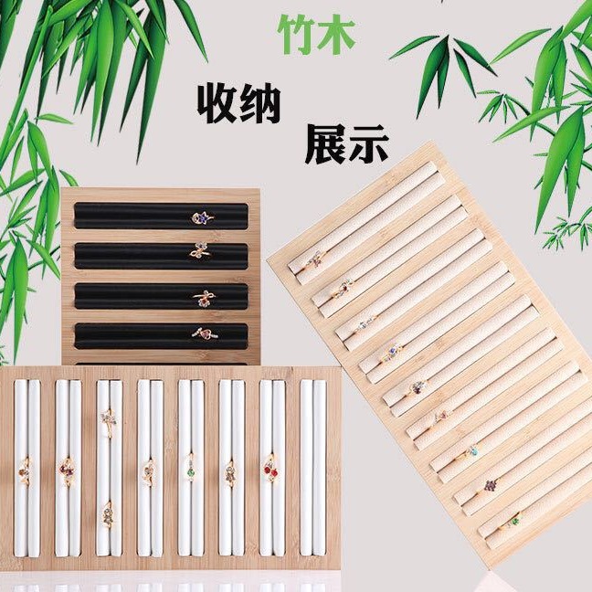 竹木3溝ジュエリー指輪トレー展示盤指輪イヤリングピアス棚アクセサリー陳列展示道具