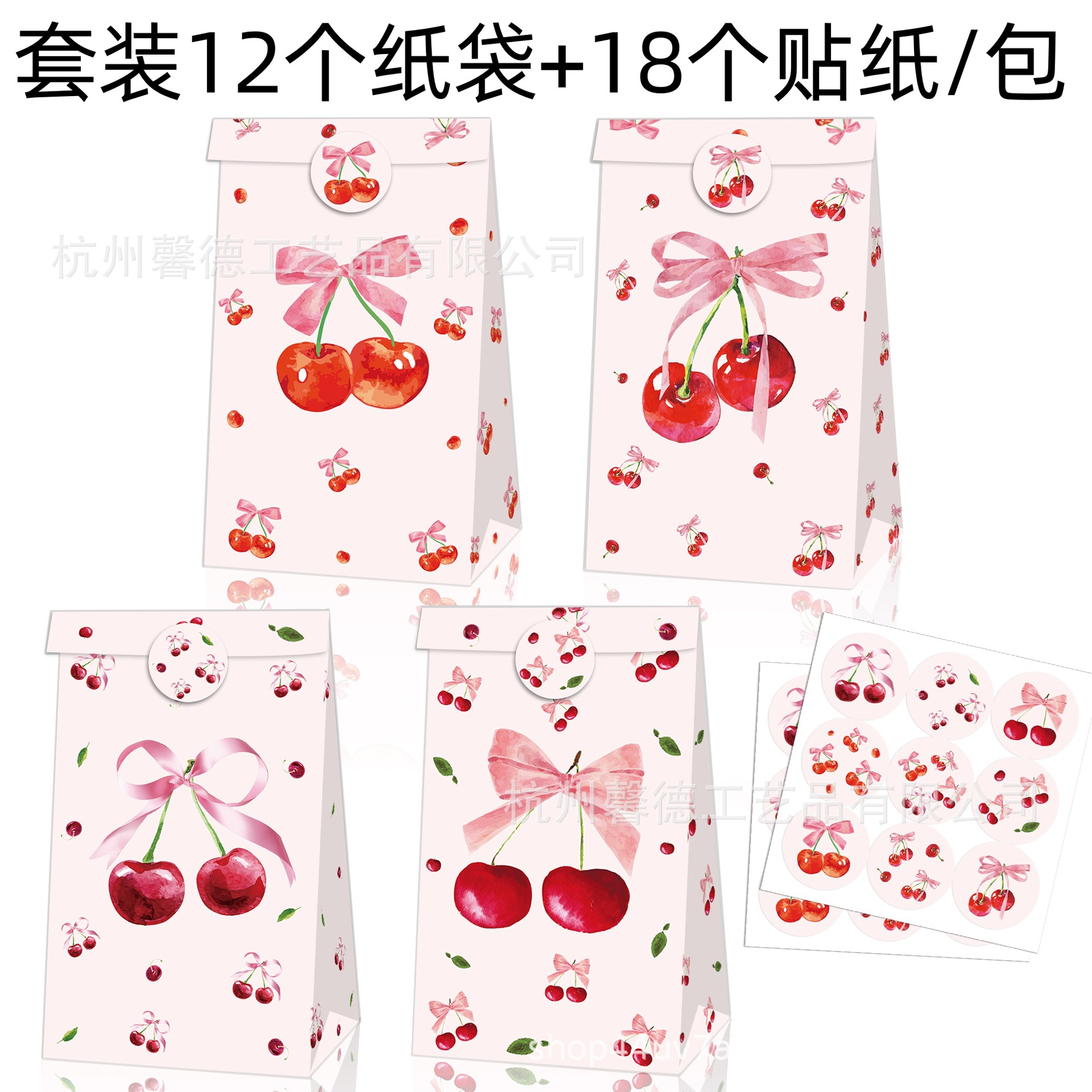 Lb 359外国貿易女子学生ピンク蝶結びさくらんぼ果物誕生日パーティーキャンディープレゼントクラフト紙袋