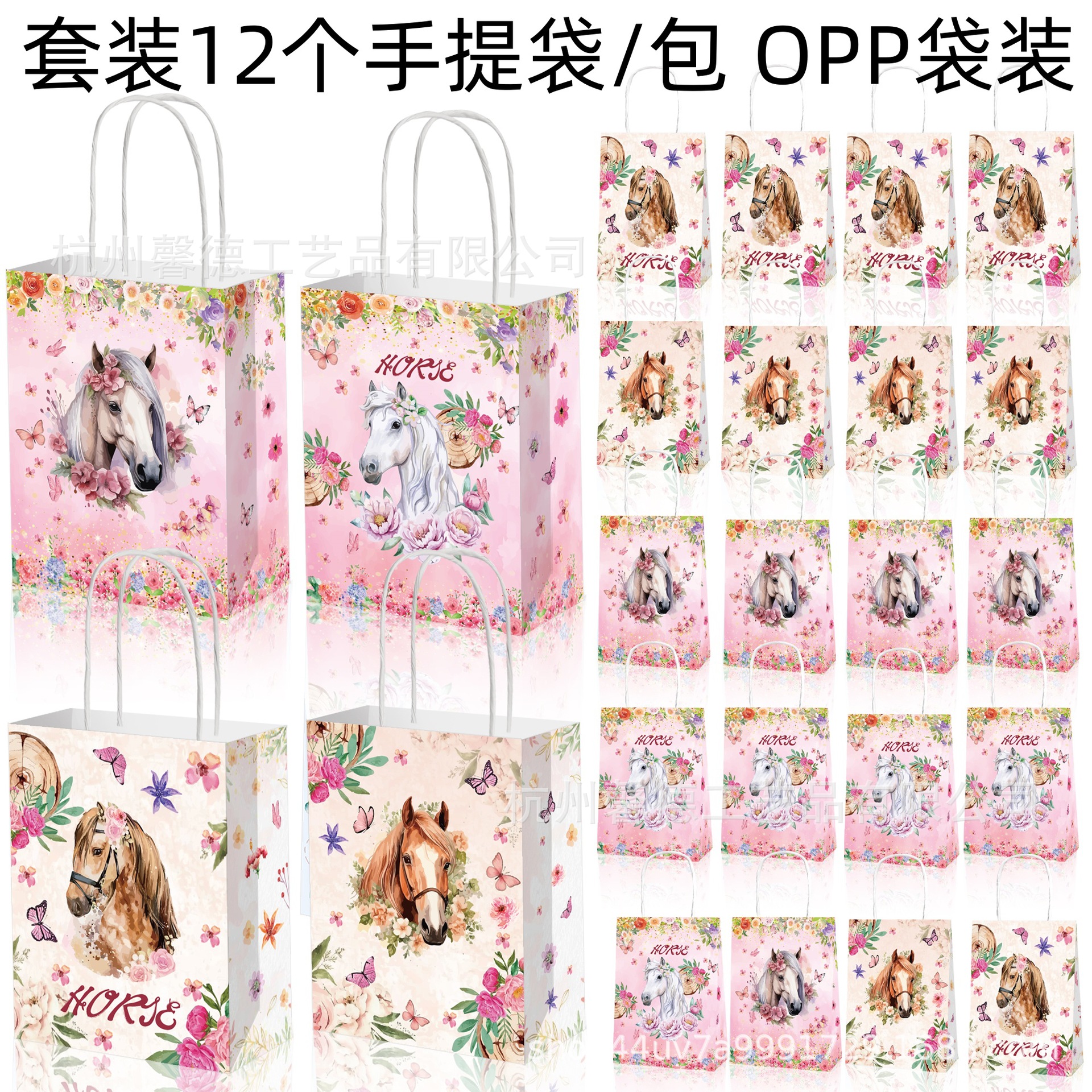 BS050外国貿易競馬ピンク花駿馬誕生日パーティーお土産キャンディープレゼント手提げ紙袋