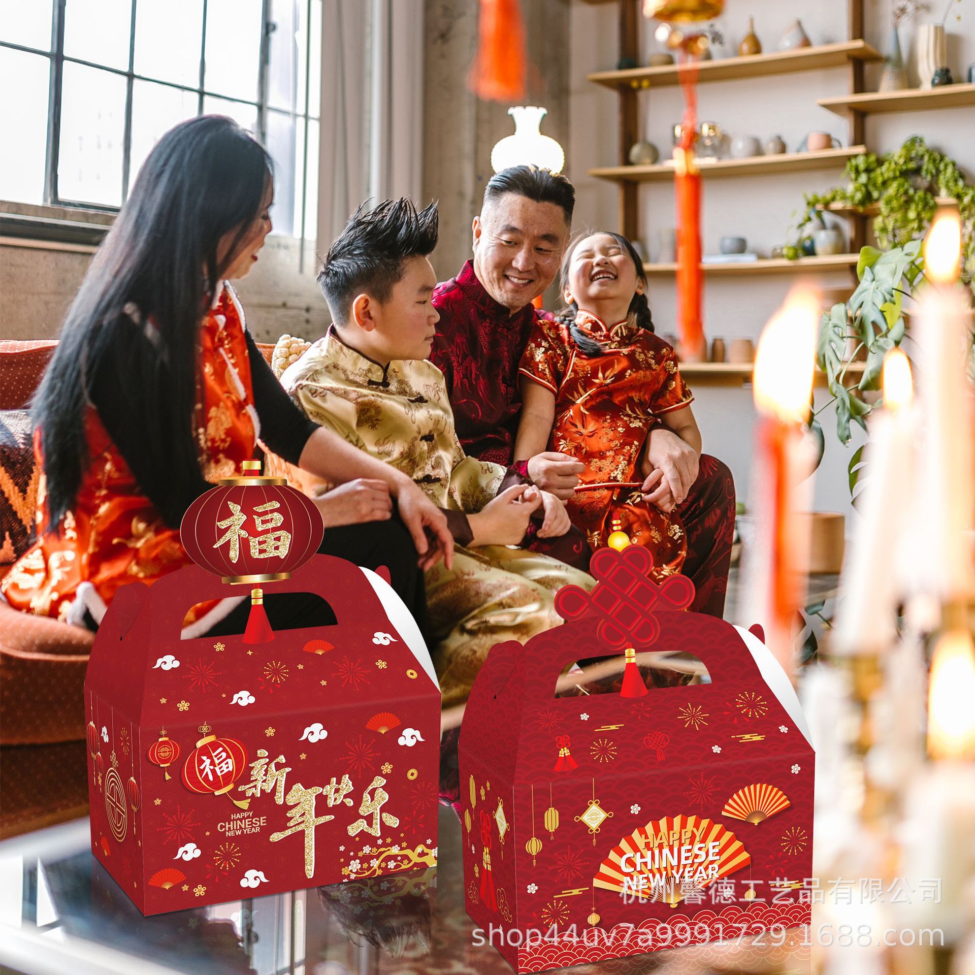 DD217新年おめでとう中国結び提灯旧正月中国年パーティープレゼント立体手提げ箱