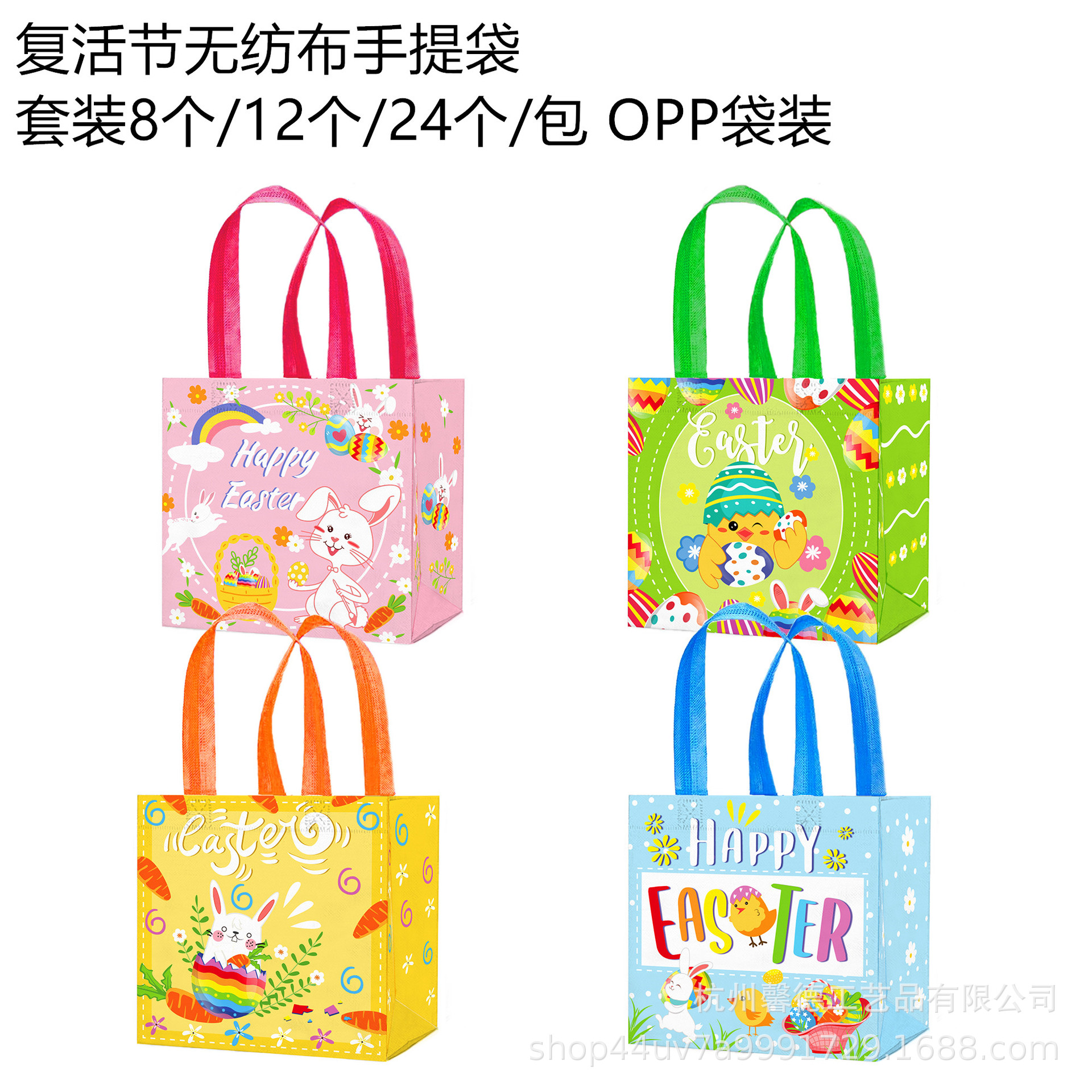 Wff001外国貿易イースターハッピーウサギhappyeasteカラーエッグ有底サイド不織布手提げ袋