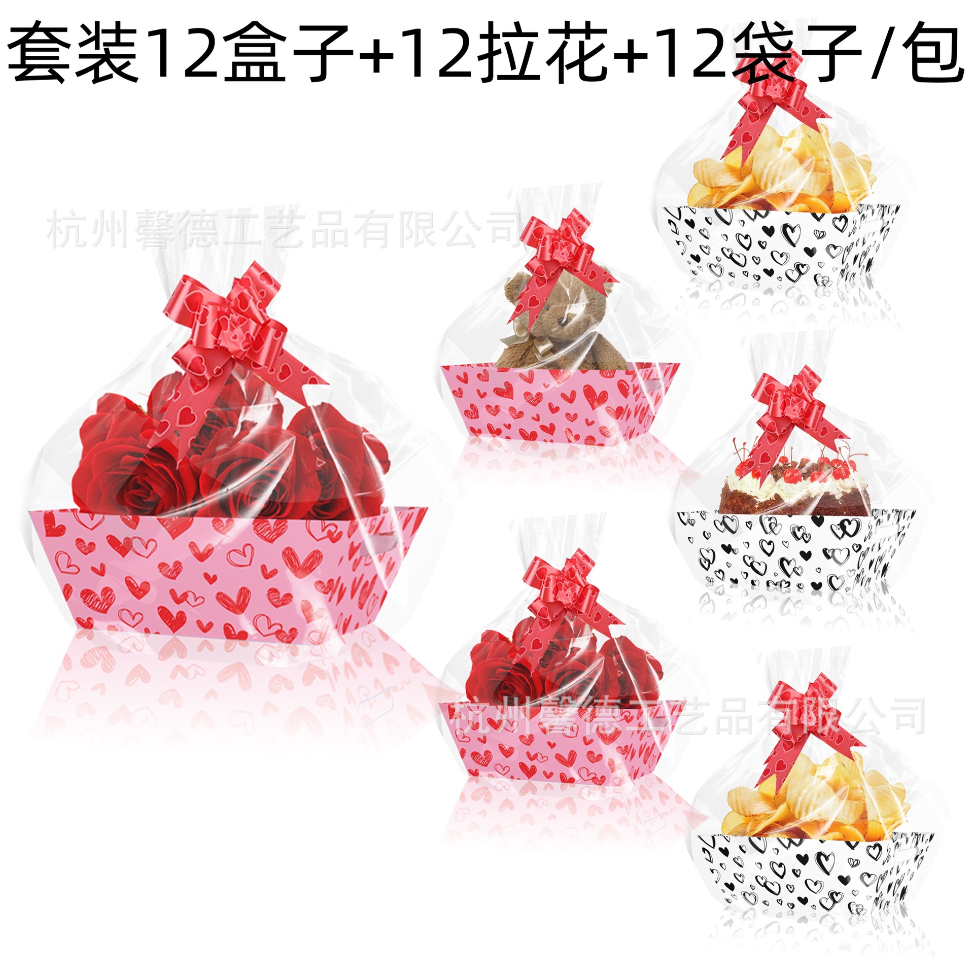 KZ160外国貿易バレンタインデー愛ピンク白黒祝日パーティープレゼントギフトボックスバスケットトレイopp袋引き花
