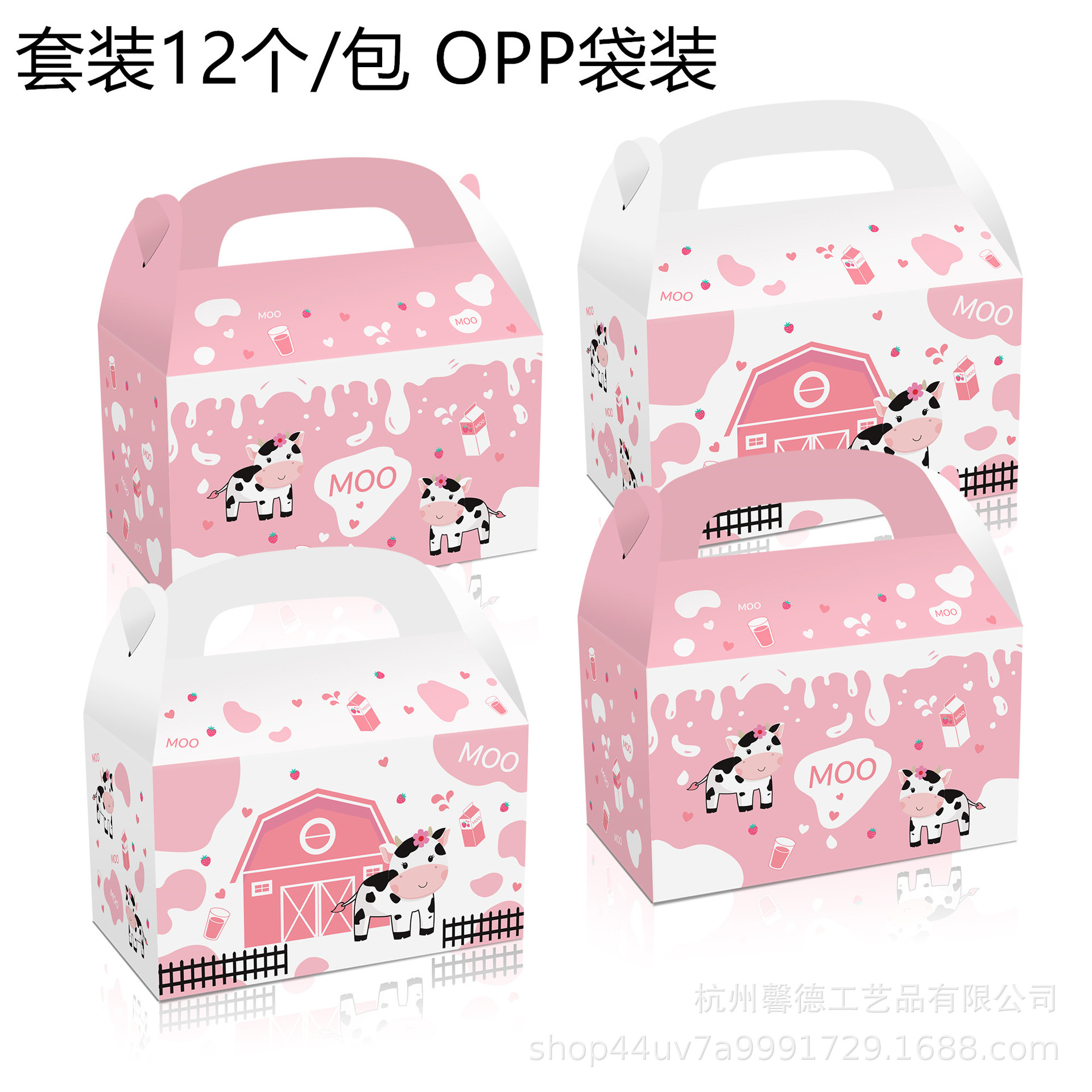 DD100アマゾン対外貿易ピンク乳牛MOO農場動物パーティープレゼントキャンディーは白い紙箱を持っている
