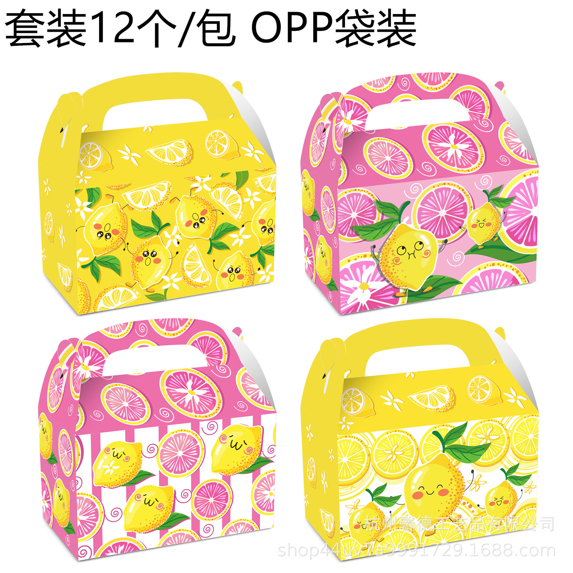 Dd142アマゾン酸っぱいレモン黄色浅紫夏清涼パーティー白カード手提げ箱プレゼントキャンディー
