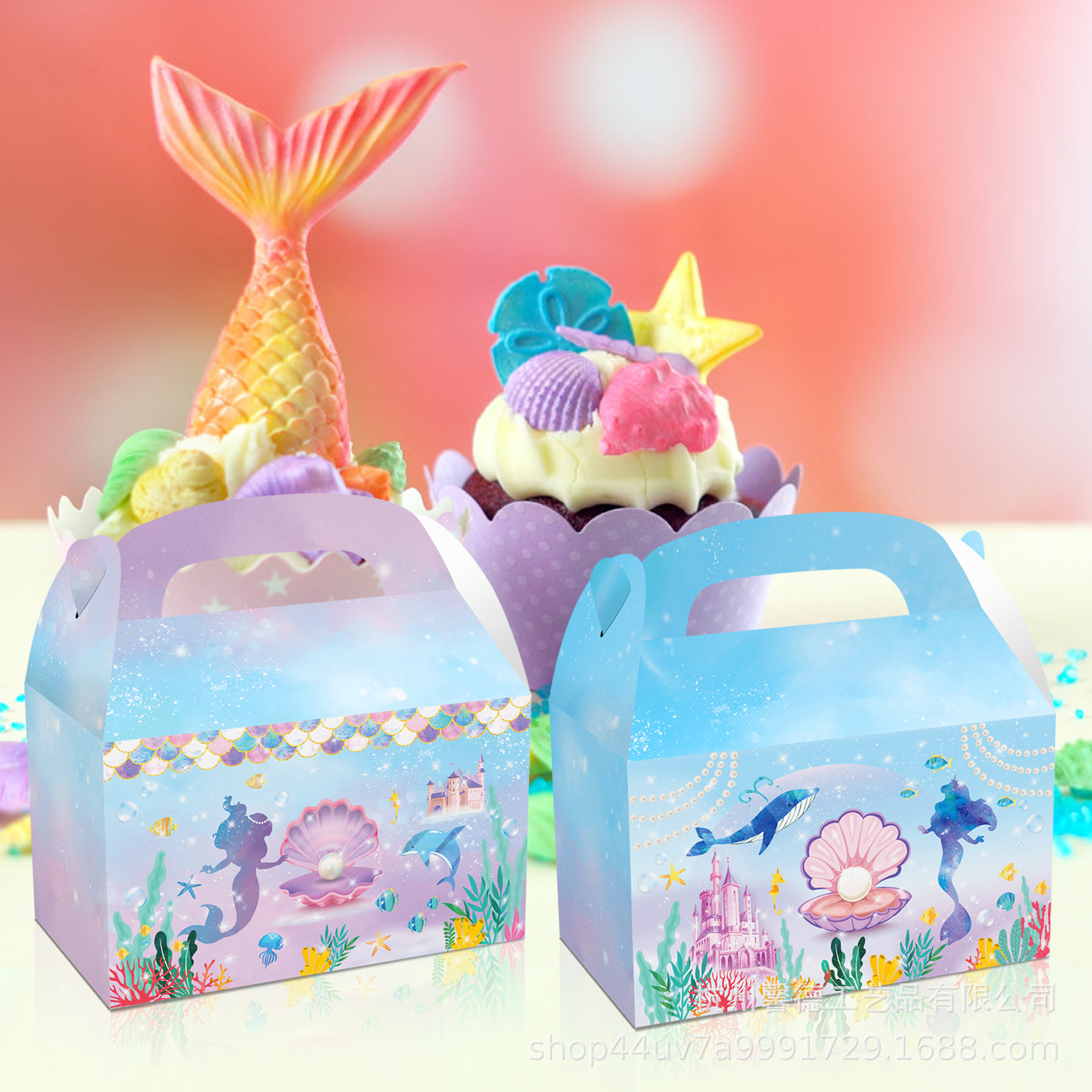 DD076アマゾンマーメイド貝殻真珠海洋白カード紙手提げギフトボックス誕生日パーティーキャンディーボックス