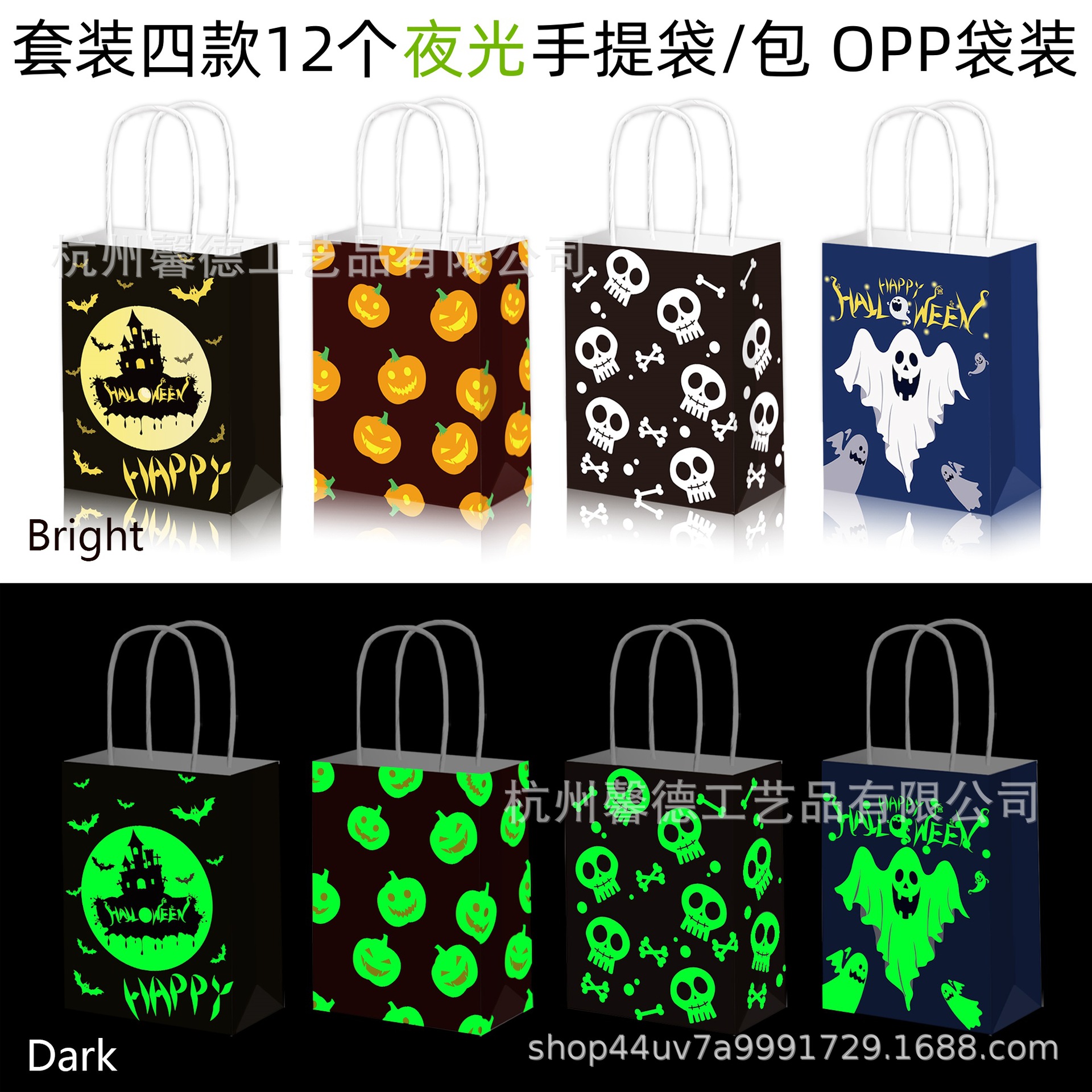 BS061 外国貿易ハロウィンカボチャゴーストゴースト城蛍光発光パーティー記念品ポータブル紙袋