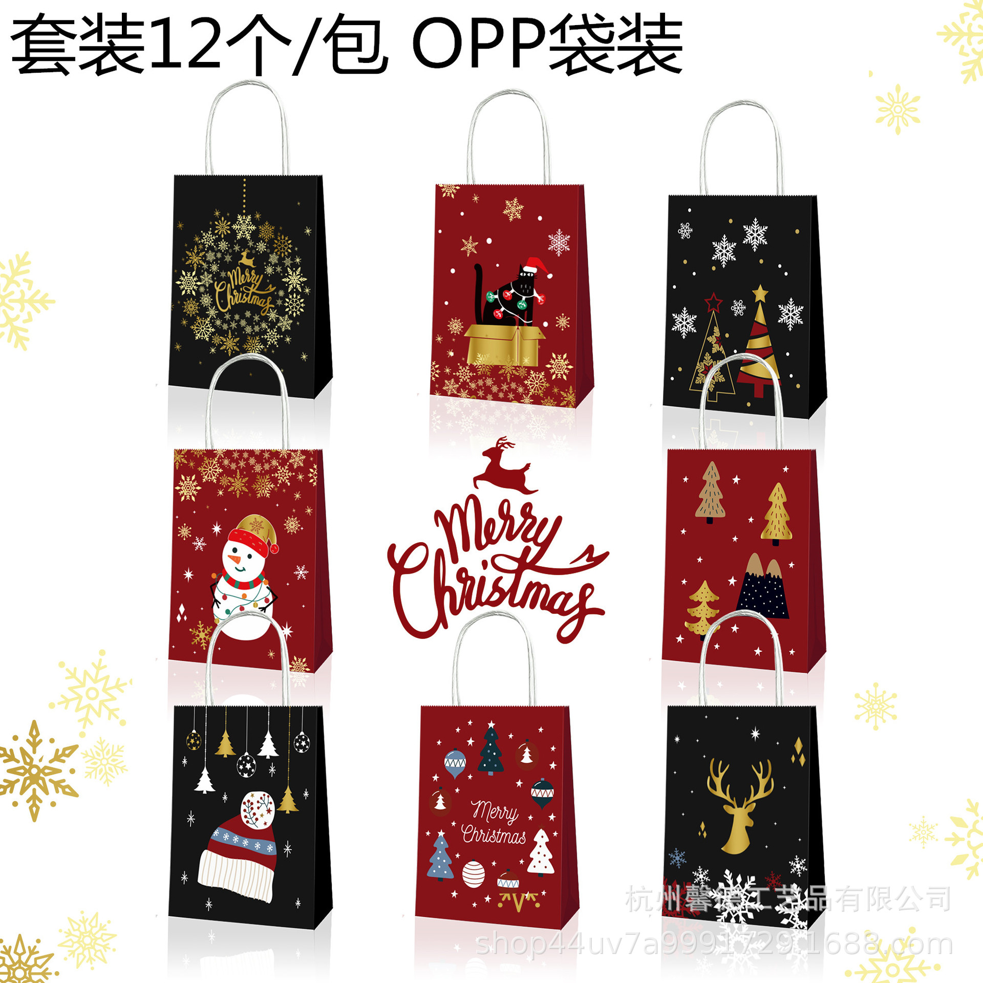 Bd091クリスマスの木の雪の花のヘラジカのサンタクロースのパーティーの贈り物の白いクラフト紙の手提げ袋